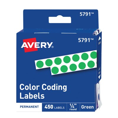 Avery Color-Coding & Round Labels - Office Depot Avery® Color-Coding Permanent Labels, Non-Printable, 5793, Round, 1/4" Diameter, Dark Blue, Pack Of 450 Dot Stickers. $5.89 / pack. Qty-Quantity + Compare . Item 191320 Avery® Color-Coding Removable Labels, Non-Printable, 5795, Round Stickers, 1/4 Inch, Assorted Colors, 768 Dot Stickers Total ...